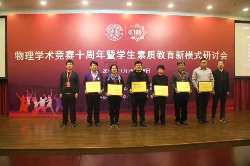 在本次研讨会最后的表彰大会上,我校被授予“中国大学生物理竞赛突出贡献奖”。这个奖项的获得也是对CUPT活动在我校蓬勃开展,快速发展的充分肯定。