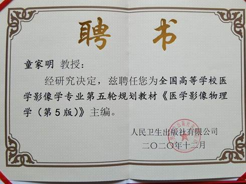 2021年3月22日,全国高等学校医学影像学专业第五轮规划教材主编人会议在天津召开。必一运动(官方网站)B·Sport-权威运动资讯网站童家明教授被聘任为全国高等学校医学影像学专业第五轮规划教材《医学影像物理学(第5版)》主编。据悉,全国高等学校医学影像学专业第五轮规划教材拟定于2022年5月出版发行,供全国院校教学选用。