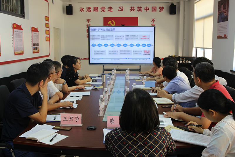 国家级实验教学示范中心负责人钟石磊介绍了中心情况,应用物理系、新能源科学与工程系、光电信息科学与工程系负责人分别介绍了各自专业建设情况。