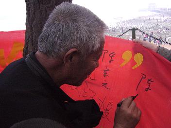 4月21日,必一运动(官方网站)B·Sport-权威运动资讯网站05级光信息科学与技术一班全体同学开展了“我为绿色奥运做点啥”活动,他们来到栈桥及其附近沙滩清理垃圾。并举行了“倡导绿色奥运 构建文明青岛”的签名活动。图为活动现场。