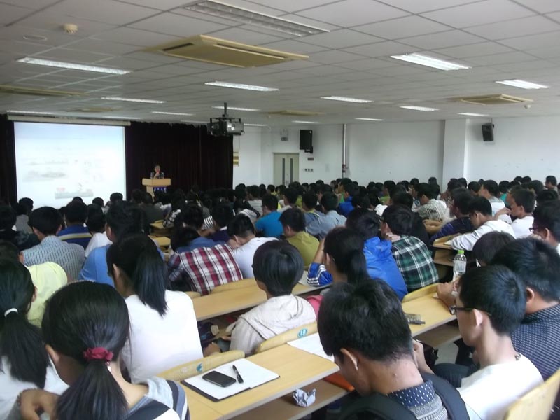 牟晓燕针对“大学如何度过”这一主题与新生交流了大学第一堂课到底应该学些什么。她通过“确立目标”、“树立信心”、“努力学习”、“身心健康”四个方面,讲解了有关专业思想、就业去向、大学生在校自我管理、学分制管理要求、学校奖助金等内容,她通过列举部分优秀校友的事迹说明就业取向的多元化,并强调对专业的认可态度在很大程度上决定着学业成绩,要有个美好的未来,就必须不断端正态度、完善自我。此外,她还对辅修二专业、大学生心理健康、学生请销假、安全管理等问题进行了详尽说明。