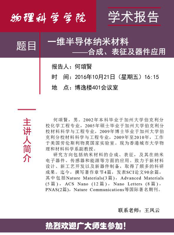 第十八期物理前沿学术报告:何颂贤教授报告会
