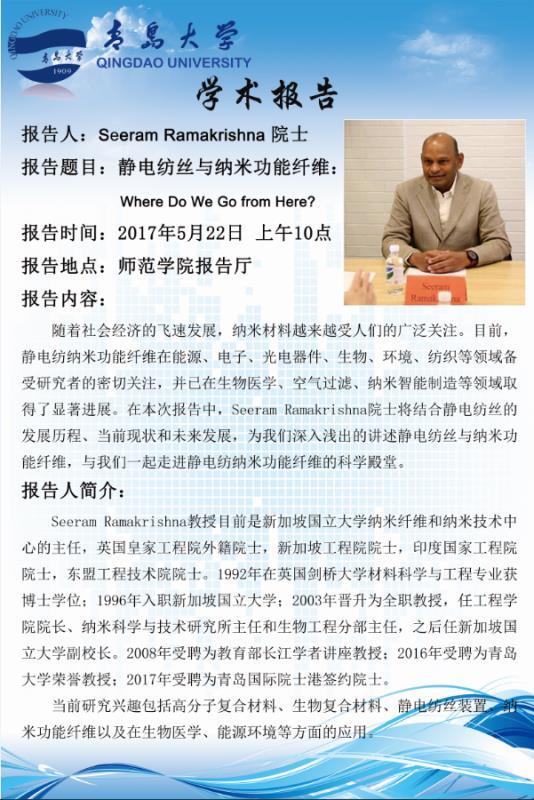 2017物理前沿学术报告第五讲:静电纺丝与纳米功能纤维:Where Do We Go from Here?