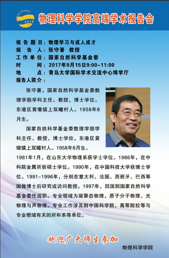 2017物理前沿学术报告第三十六讲:物理学习与成人成才