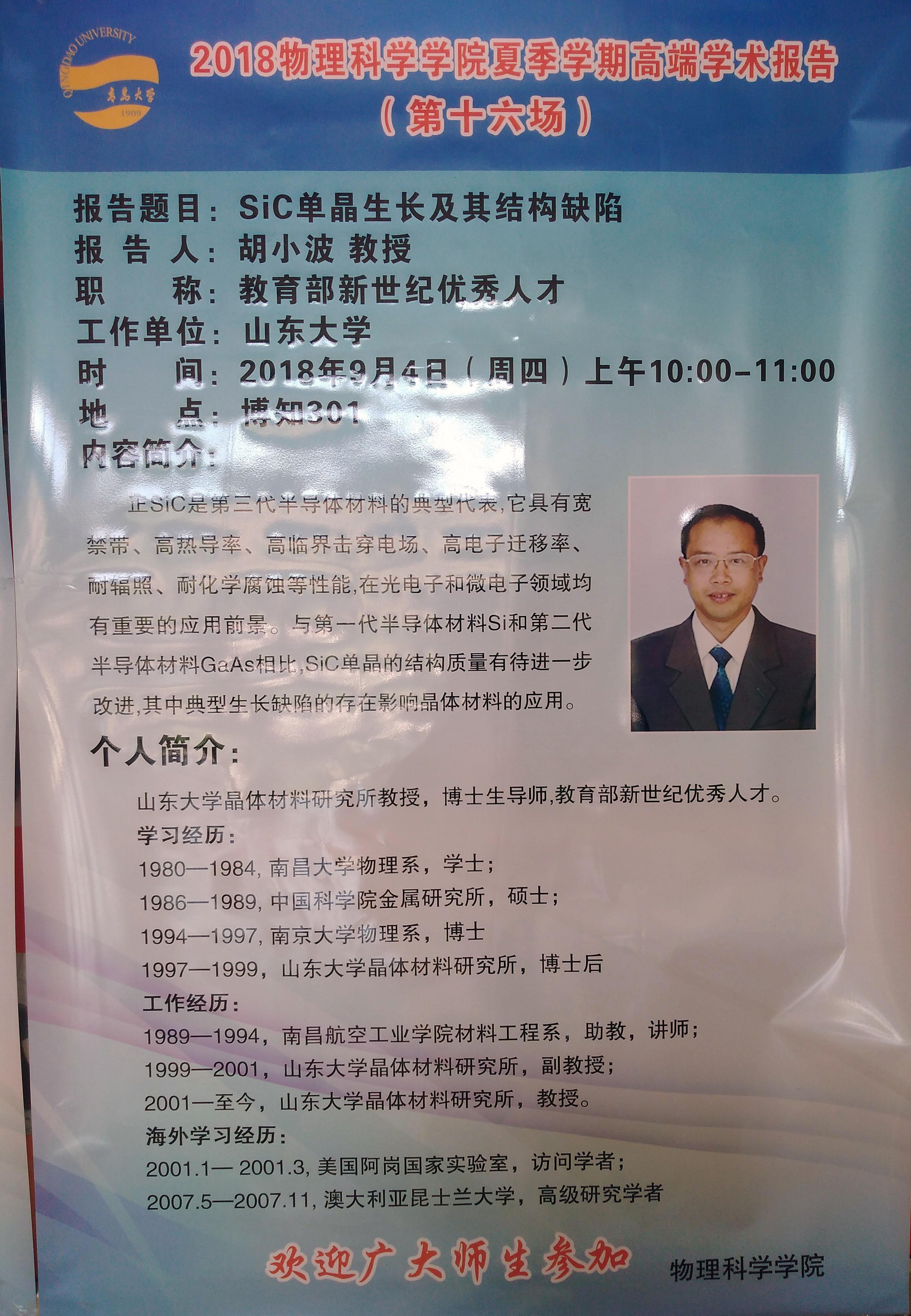 2018物理前沿学术报告第三十七讲:SiC单晶生长及其结构缺陷