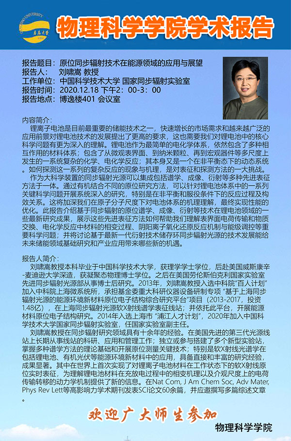 学术报告:原位同步辐射技术在能源领域的应用与展望