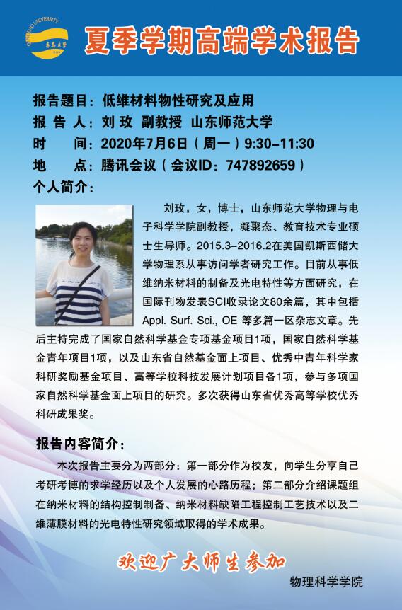 上一篇:夏季学期高端学术报告:激光光谱技术在海洋探测中的应用