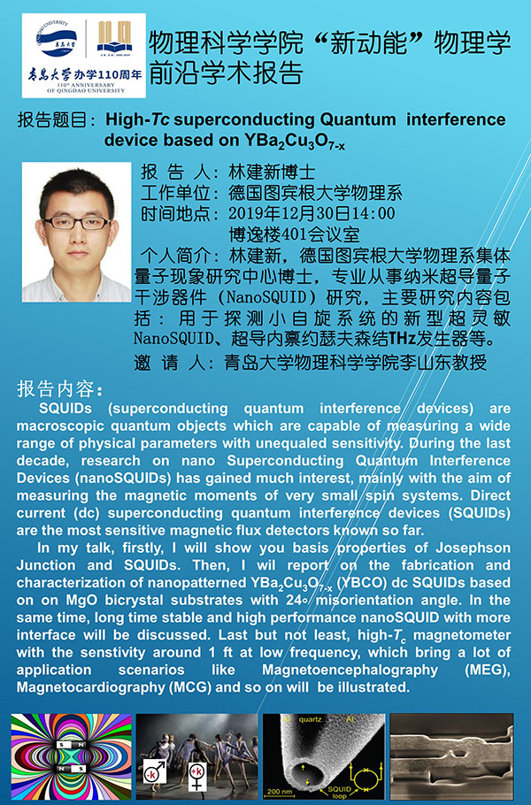 “新动能”物理学前沿学术报告30:High-TC superconducting Quantum interference device based on YBa2Cu3O7-x