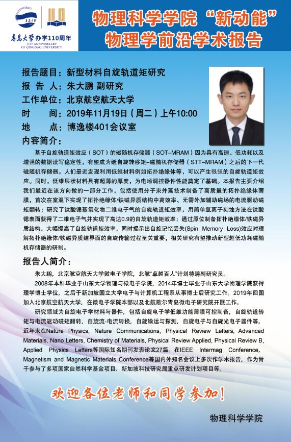 “新动能”物理学前沿学术报告26:新型材料自旋轨道矩研究