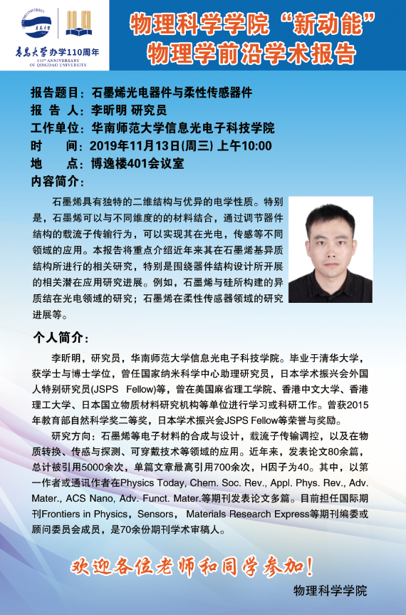 “新动能”物理学前沿学术报告23:石墨烯光电器件与柔性传感器件