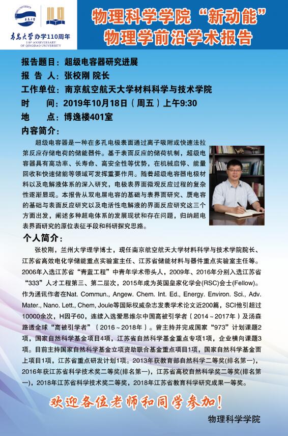 “新动能”物理学前沿学术报告21:超级电容器研究进展