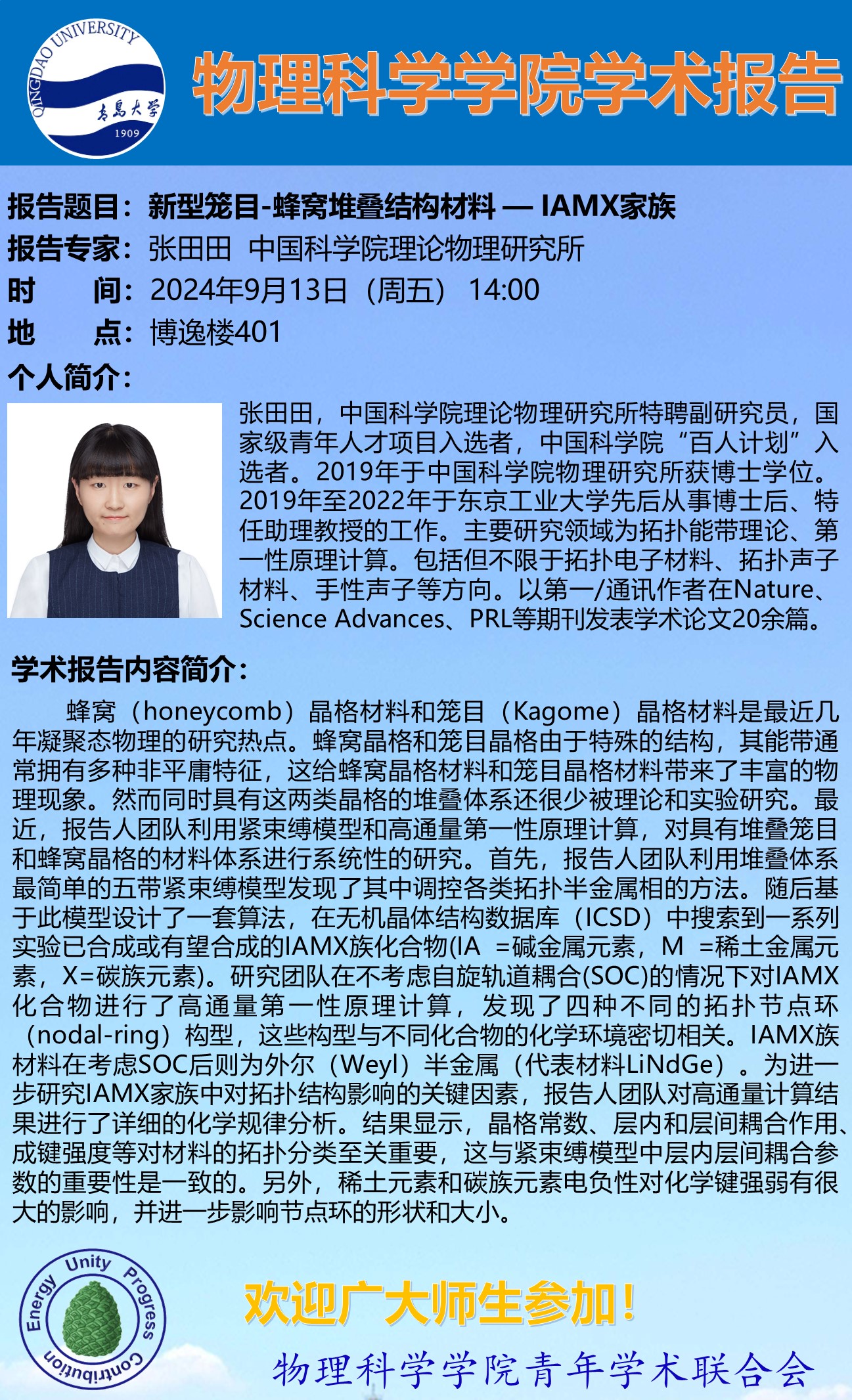 [学术预告]张田田-新型笼目-星空堆叠结构材料——IAMX家族