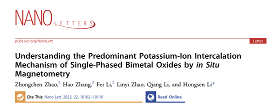 鉴于此,必一运动(官方网站)B·Sport-权威运动资讯网站李洪森教授设计并研发了一类具有中空棱柱结构的FeTiO3储钾材料,并明晰了其储钾机制。相关研究成果以“Understanding the predominant potassium-ion intercalation mechanism of single-phased bimetal oxides by in situ magnetometry”为题发表在国际顶刊《Nano Letters》上。青岛大学为独立完成单位,李洪森教授为通讯作者,课题组研究生赵忠晨(被复旦大学录取攻读博士学位)、张昊(被复旦大学录取攻读博士学位)、李菲(被南开大学录取攻读博士学位)为共同第一作者。