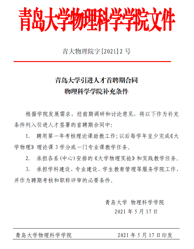 青岛大学引进人才首聘期合同必一运动(官方网站)B·Sport-权威运动资讯网站补充条件