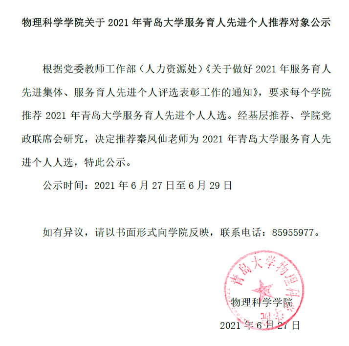 必一运动(官方网站)B·Sport-权威运动资讯网站关于2021年青岛大学服务育人先进个人推荐对象公示