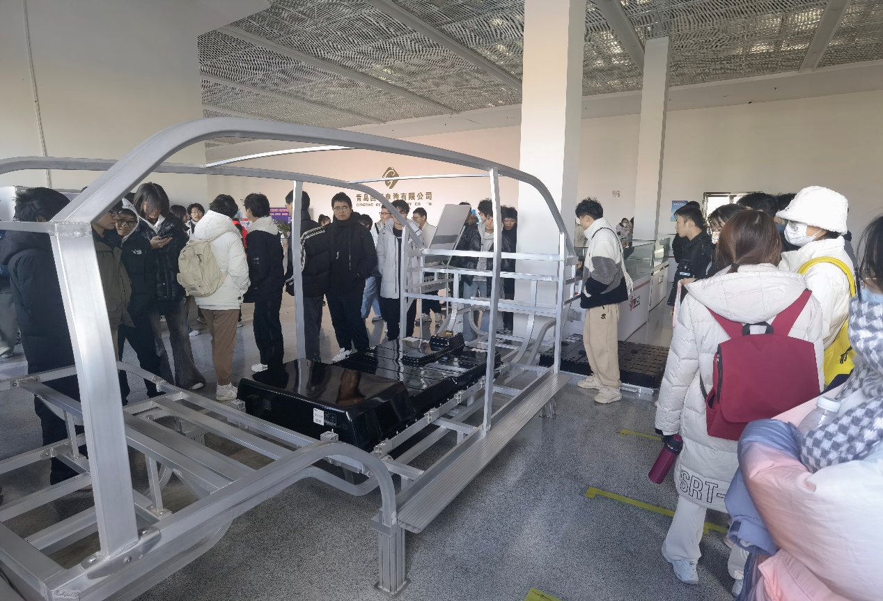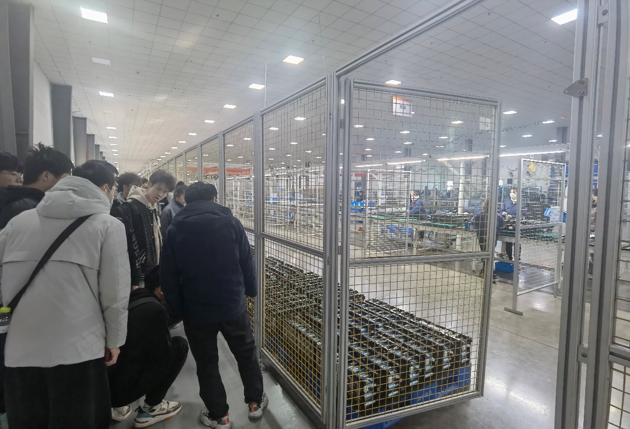 在讲解员的讲解下,同学们详细了解了青岛国轩的发展历程、产品特色和优势,并参观体验了电池生产车间,对锂电池的制备流程有了一定的认识。同学们兴趣浓厚,观摩仔细,并不时与讲解员及老师进行讨论。