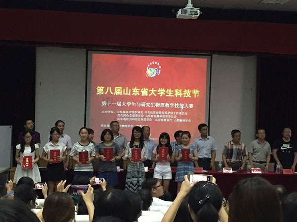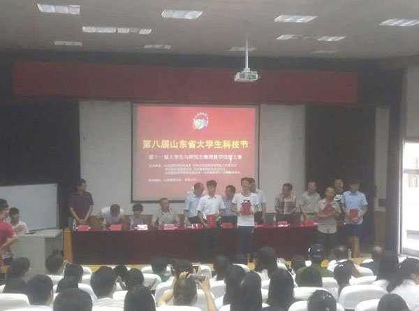 山东省大学生科技节是由山东省科学技术协会、省委高校工委、团省委、省发改委、省经信委、省教育厅联合举办,山东省第十一届大学生与研究生物理教学技能大赛是第八届山东省大学生科技节的主要活动之一,是为培养高等院校物理学及相近专业大学生和研究生的教师职业意识,提高大学生、研究生做中学物理教师的教学技能,促进大学生以及研究生的全面发展而进行的。本次比赛由山东物理学会、鲁东大学物理与光电工程学院承办。