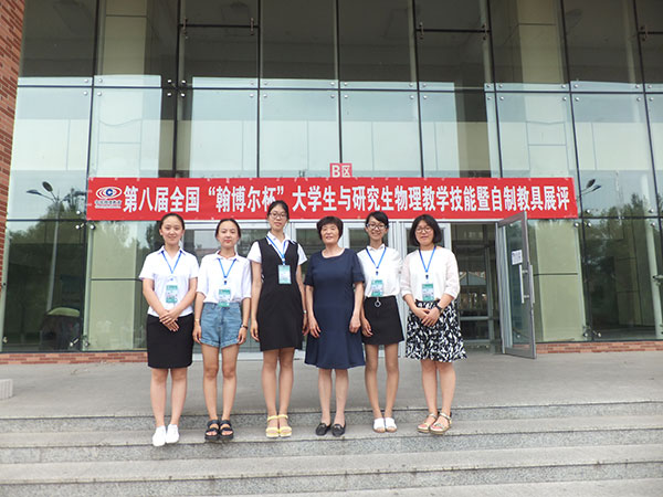 7月30日至31日,第八届全国大学生与研究生物理教学技能暨自制教具展评在哈尔滨师范大学举行。必一运动(官方网站)B·Sport-权威运动资讯网站从省赛中选拔出5名学生组成青岛大学代表队,由学院何丽珠老师带队首次参加此次展评。在展评中,姜晗、王如魁两位同学荣获二等奖,孙箐、高璇、孙斐雯三位同学荣获三等奖,张芳、韩会景两位老师获得“优秀指导教师”荣誉称号。