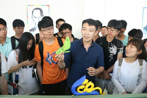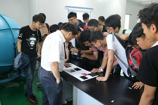 下午1:30,在研究所工作人员的引导下,同学们首先来到青岛汇智桥光电创客空间,体验了3D打印技术、VR技术,听取了无人机原理讲解。随后,同学们来到激光影棚参观并拍照留念,在光电研究所展示区领略了关于光电的最前沿的科研成果。最后,同学们参观了3D打印展厅和3D打印制造工厂,初步了解了3D打印的原理和应用。展区负责人就创业、职业前景等同学们关心的问题,与同学们进行了探讨,提出了针对性建议,为同学们的职业规划提供了参考。