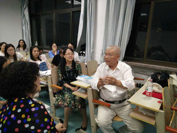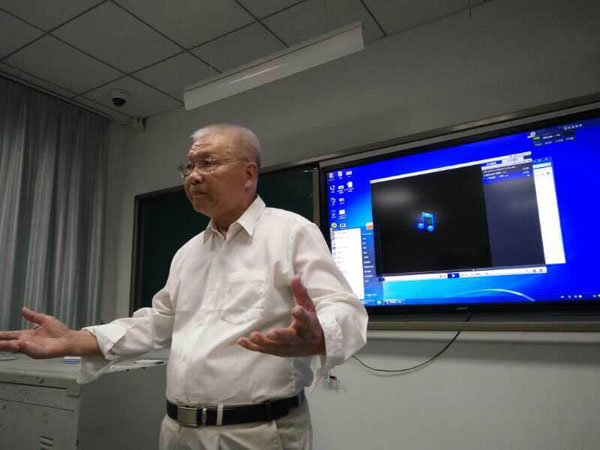 会上,滕冰向陈祖骥颁发了科普顾问证书,聘请他为学院科普活动指导教师。陈祖骥老师向同学们讲述了科普的重要性,演唱了由自己编词的歌曲《电磁波》。