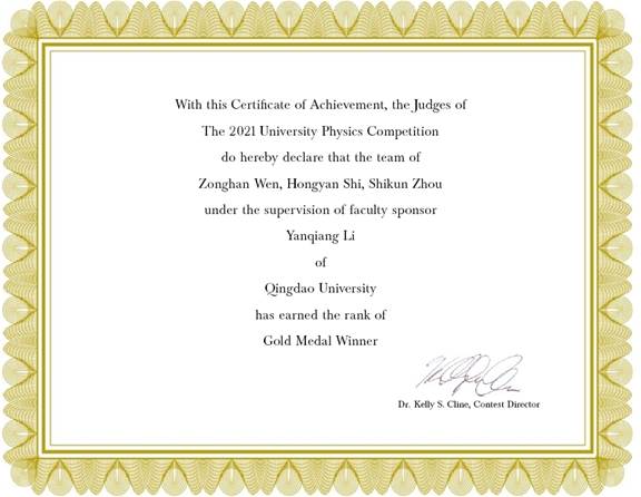 近日,2021年国际大学生物理竞赛(The University Physics Competition,UPC)成绩公布。由我校必一运动(官方网站)B·Sport-权威运动资讯网站师生为主的青岛大学参赛队表现出色,荣获金奖1项、银奖1项、铜奖5项。