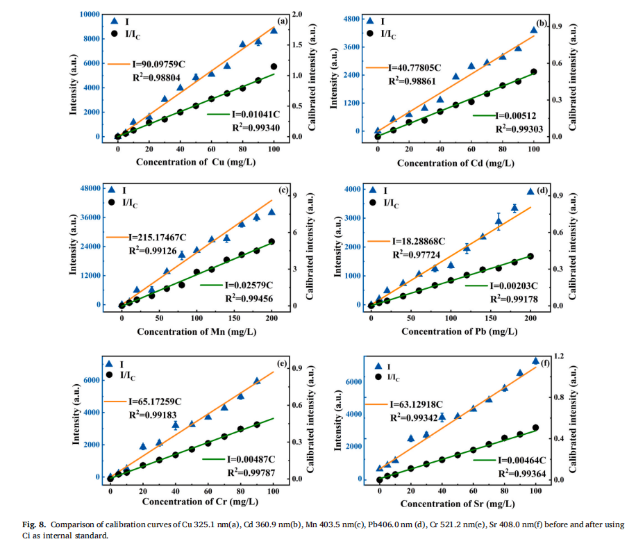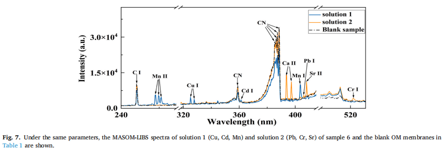 实验结果表明,经过优化参数后,系统各元素的RSD值基本低于1%。同时,该方法的最小检测限可达到0.013 mg/L,所有检测元素的检测限基本低于0.1 mg/L,检测时间仅为3 min。MASOM-LIBS增强方法的检测灵敏度和速度都比类似的LIBS增强方法有明显的优势。MASOM-LIBS方法有望发展成为一种全自动、实时、高灵敏度、多元素水痕量重金属检测技术,并有望广泛应用于水污染监测或工业排放控制等领域。