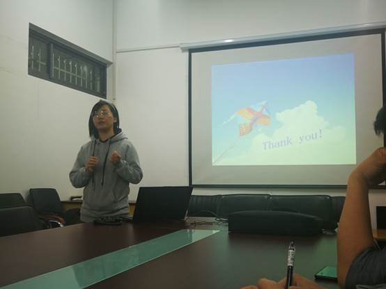 刘桂菊从能源危机和量子点材料引入主题,介绍了先进的太阳能聚光器技术,通过聚光的方式把一定面积上的光汇聚在一个狭小的区域,太阳能电池仅需焦斑面积的大小即可,从而大幅减少了太阳能电池的用量。随后又介绍了直接利用太阳光在催化剂存在的条件下制备绿色清洁、可贮存运输的氢气能源的技术。此外,刘桂菊师姐还讲解了一些投稿技巧以及期刊选择的方法。报告会后,就相关问题与大家进行了讨论交流。