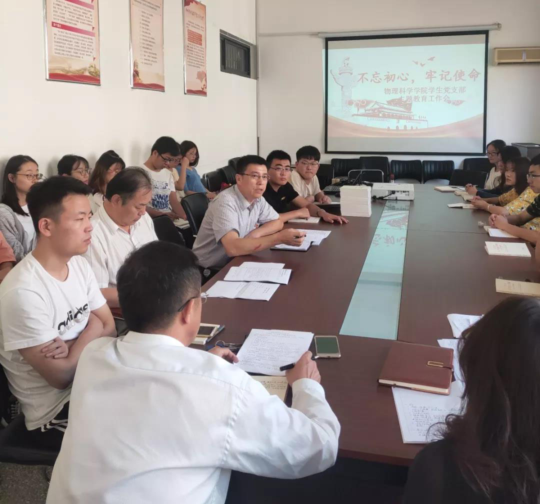 会上,学生党支部书记李慧晶引领大家一起学习了“不忘初心、牢记使命”主题教育的总体要求和任务,她从“根本任务、总体要求、具体目标、四项重点措施、四个专项教育、四个到位、四个讲清、五个对照”等方面介绍主题教育的主要内容,她从工作安排和任务措施的角度解读了学生党支部主题教育实施方案的两大模块“学习教育”和“实践教育”,并布置了具体学习任务。