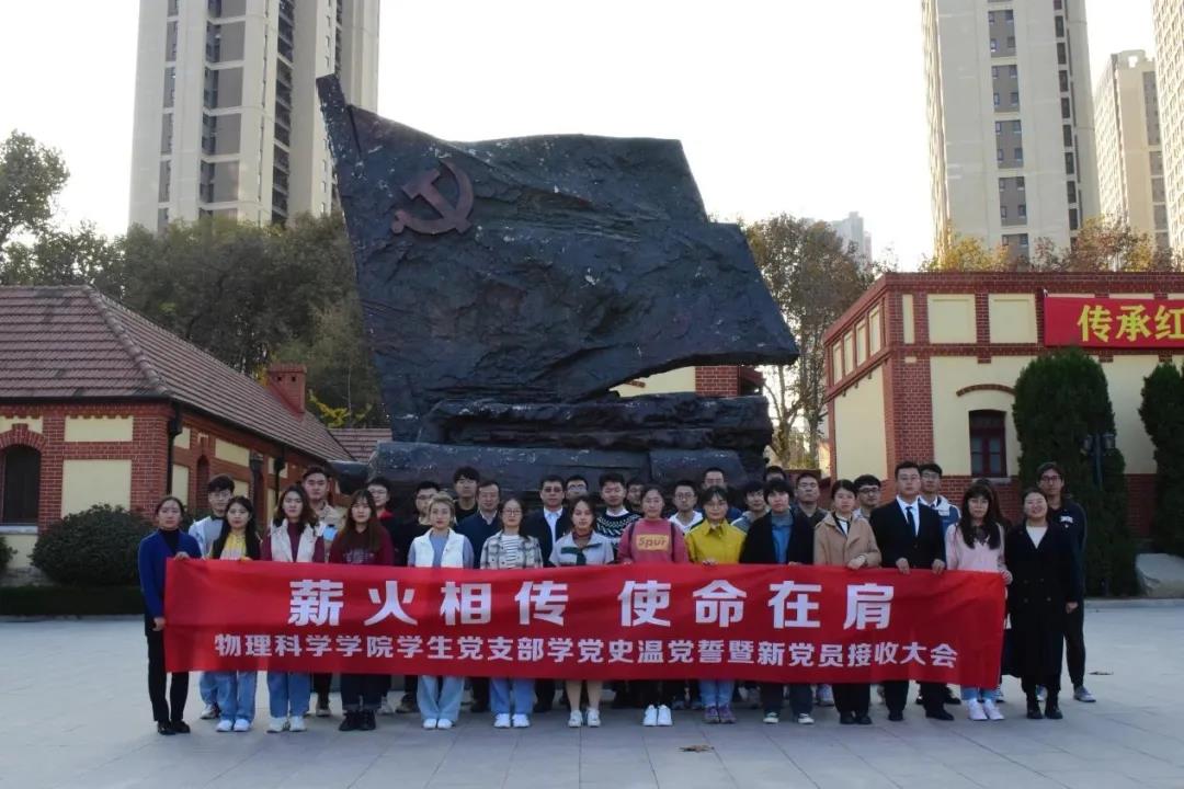 11月12日,必一运动(官方网站)B·Sport-权威运动资讯网站学生党支部在中共青岛党史纪念馆举行“学党史,温党誓” 主题党日活动暨新党员接收大会。院党委书记李升学,院党委副书记郝伟,学生党支部书记赵斐斐,辅导员韩章柱、李雪昕、侯美玲,部分学生党员参加了活动。
