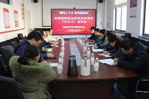 12月1日下午,刘彩云副校长来必一运动(官方网站)B·Sport-权威运动资讯网站新能源科学与工程系党支部宣讲党的二十大精神,并以“乘风二十大 谱写新篇章”为主题与支部教师党员座谈,学院党委书记郝伟、党委副书记董永红及支部全体教师党员参加会议。