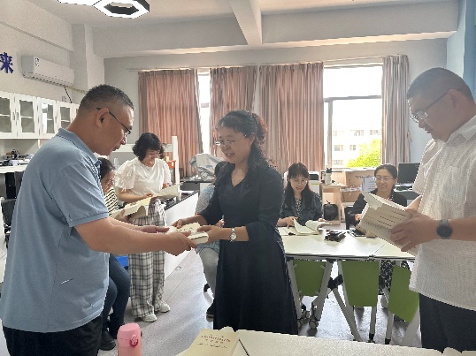 滕冰结合国际时事和学院实际工作,围绕“习近平总书记关于建设教育强国讲话精神”为支部全体党员讲了专题党课,并向每位党员发放了《国史经典》学习材料。