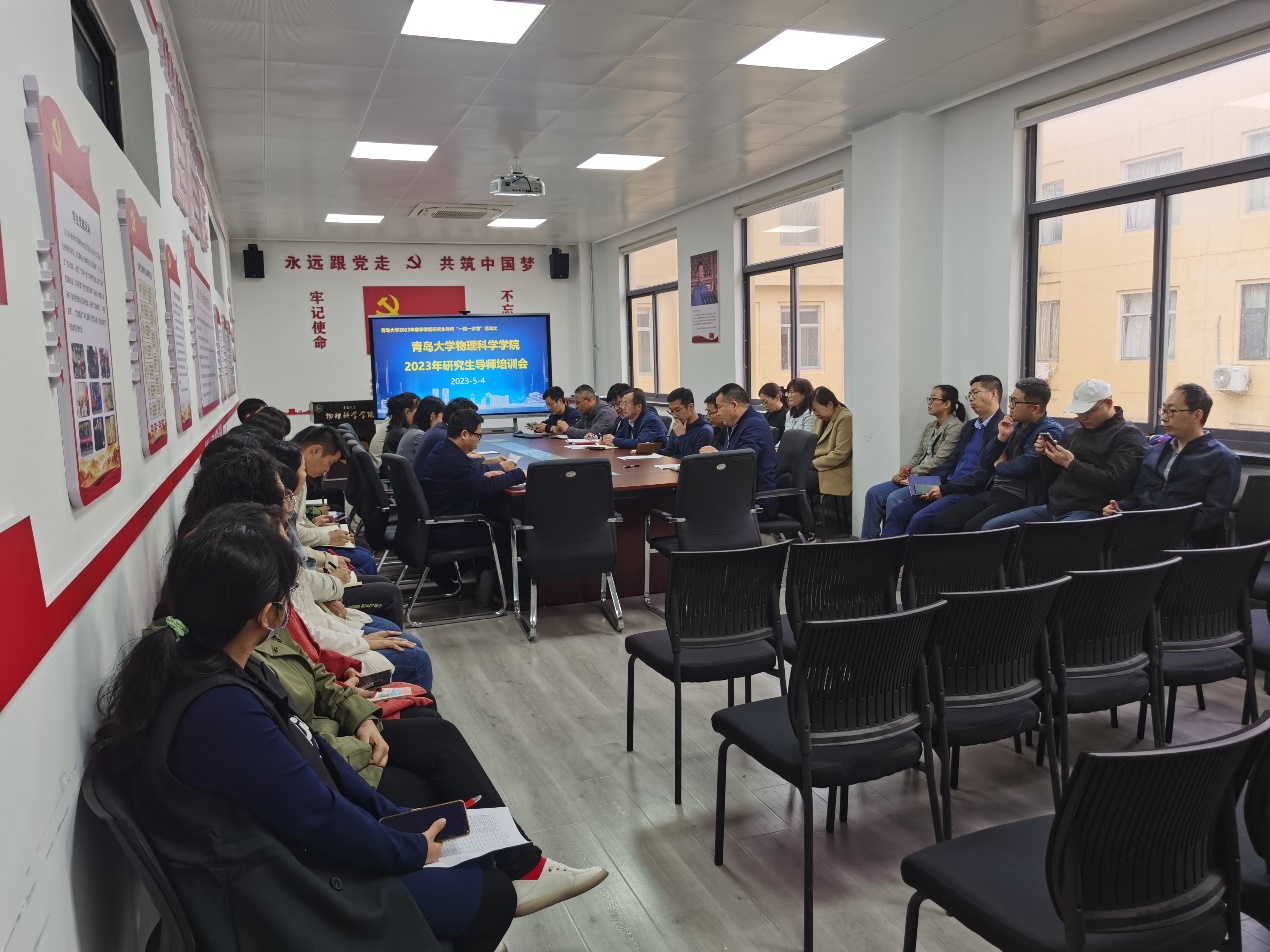 为深入学习贯彻党的二十大精神以及习近平总书记关于教育的系列重要论述,全面贯彻全国研究生教育会议精神,提升必一运动(官方网站)B·Sport-权威运动资讯网站研究生导师队伍水平,根据研究生院学位办《关于组织开展青岛大学2023年春季学期研究生导师“一院一沙龙”的通知》(学位办字〔2023〕1号)要求,5月4日“五四”青年节下午,必一运动(官方网站)B·Sport-权威运动资讯网站在博逸楼401会议室召开研究生导师培训会,学院党委书记郝伟,院长滕冰,副院长王乙潜、龙云泽,院长助理张永成,学术委员会常务副主任李强以及40余位研究生导师参加了会议,会议由王乙潜主持。