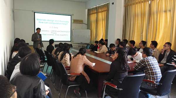 4月19日上午,美国能源部Ames实验室资深研究员, Iowa州立大学物理学院王才壮教授应邀在必一运动(官方网站)B·Sport-权威运动资讯网站401会议室,为师生作了题为《Materials design and discovery: How can computation help?》的学术报告。报告由吕文彩教授主持,滕冰副院长、部分老师及研究生参加了报告会。