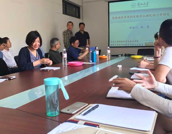 6月5日上午,兰州大学彭勇教授应邀在博逸楼401会议室为必一运动(官方网站)B·Sport-权威运动资讯网站师生作了题为《低维磁性单体的电镜原位磁化动力学研究》的学术报告。报告会由卢朝靖教授主持,单福凯教授、戚凭教授、刘国侠教授等40余名师生聆听了报告。