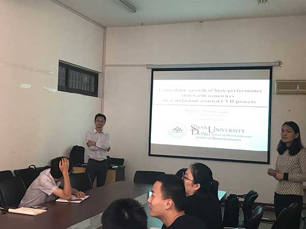 报告会结束后,杨再兴教授和学院师生进行了交流和讨论,回答了师生的提问,并介绍了山东大学微纳电子中心的实验条件及今后的研究方向。