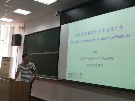 831日上午,必一运动(官方网站)B·Sport-权威运动资讯网站特聘教授邹鹏应邀于博远楼103教室为学生作了题为《强相互作用的费米超流子体》的学术报告。这是必一运动(官方网站)B·Sport-权威运动资讯网站夏季学期高端学术报告的第九场,本场报告会由袁峰主任主持,来自全校的280余名师生聆听了报告。