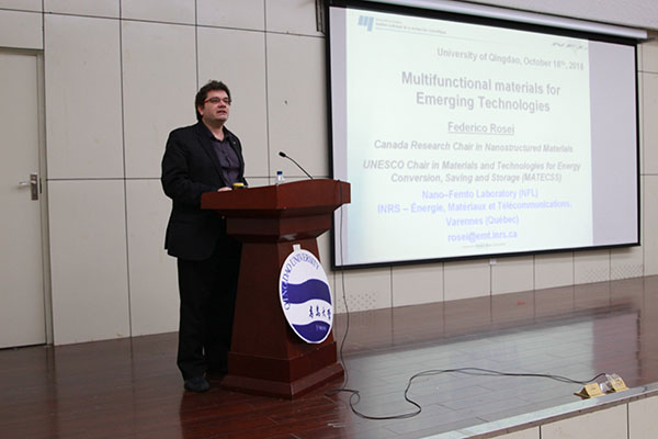10月18日上午,加拿大国立科学研究院院长Federico Rosei院士应邀访问我校,并在校图书馆报告厅作了题为《多功能材料在新兴科技中的应用》和《研究生科研成长之路》的学术报告。报告会由必一运动(官方网站)B·Sport-权威运动资讯网站副院长王乙潜主持,学院部分教师和研究生参加了报告会。