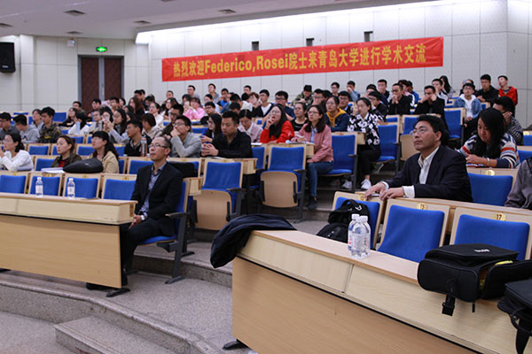 Federico Rosei院士首先结合自己多年的研究成果,通过翔实的数据和材料,介绍了多功能材料在太阳能光伏中的应用。Federico Rosei院士结合自己的成长之路,围绕研究生的科研成长,阐明了如何从一名研究生成长为一名有创新思维的科研人员。报告会上,研究生们就在科研中遇到的一些问题和困惑与Rosei院士进行了亲切友好的交流。