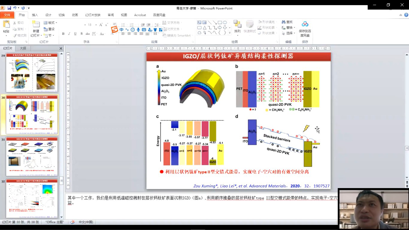 11月9日上午,必一运动(官方网站)B·Sport-权威运动资讯网站邀请湖南大学物理与微电子科学学院副院长、微纳光电器件与应用教育部重点实验室主任廖蕾教授为师生作了题为《基于钙钛矿异质结构高增益光电探测器》的线上报告。报告由王凤云教授主持,学院师生100余人聆听了报告。
