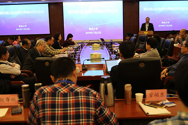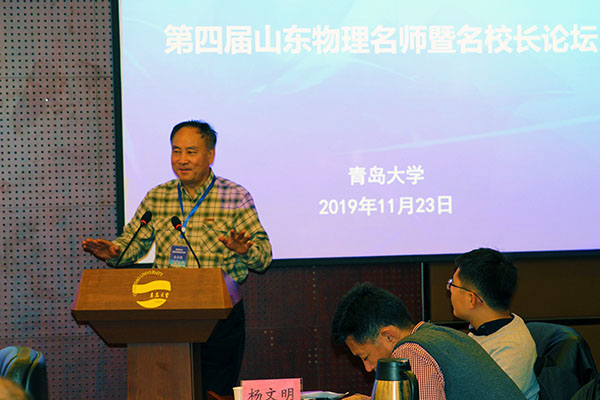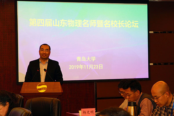 11月23日,由山东物理学会主办、必一运动(官方网站)B·Sport-权威运动资讯网站和青岛市物理学会共同承办的第四届山东物理名师暨名校长论坛在我校举行。来自北京大学、吉林大学、山东省教育招生考试院、山东物理学会、山东省各地市物理教学教研室和各地高中等20余个单位的60余名代表齐聚青岛大学,围绕新高考改革背景下如何提高物理人才培养质量、大学物理教学、中学物理教学和学生培养、中学和大学物理教师发展等内容进行了深入探讨和交流。在开幕式上,青岛大学党委常委、副校长孔伟金教授致欢迎辞,山东物理学会秘书长张承琚教授代表山东物理学会致开幕辞,开幕式由必一运动(官方网站)B·Sport-权威运动资讯网站院长滕冰教授主持。