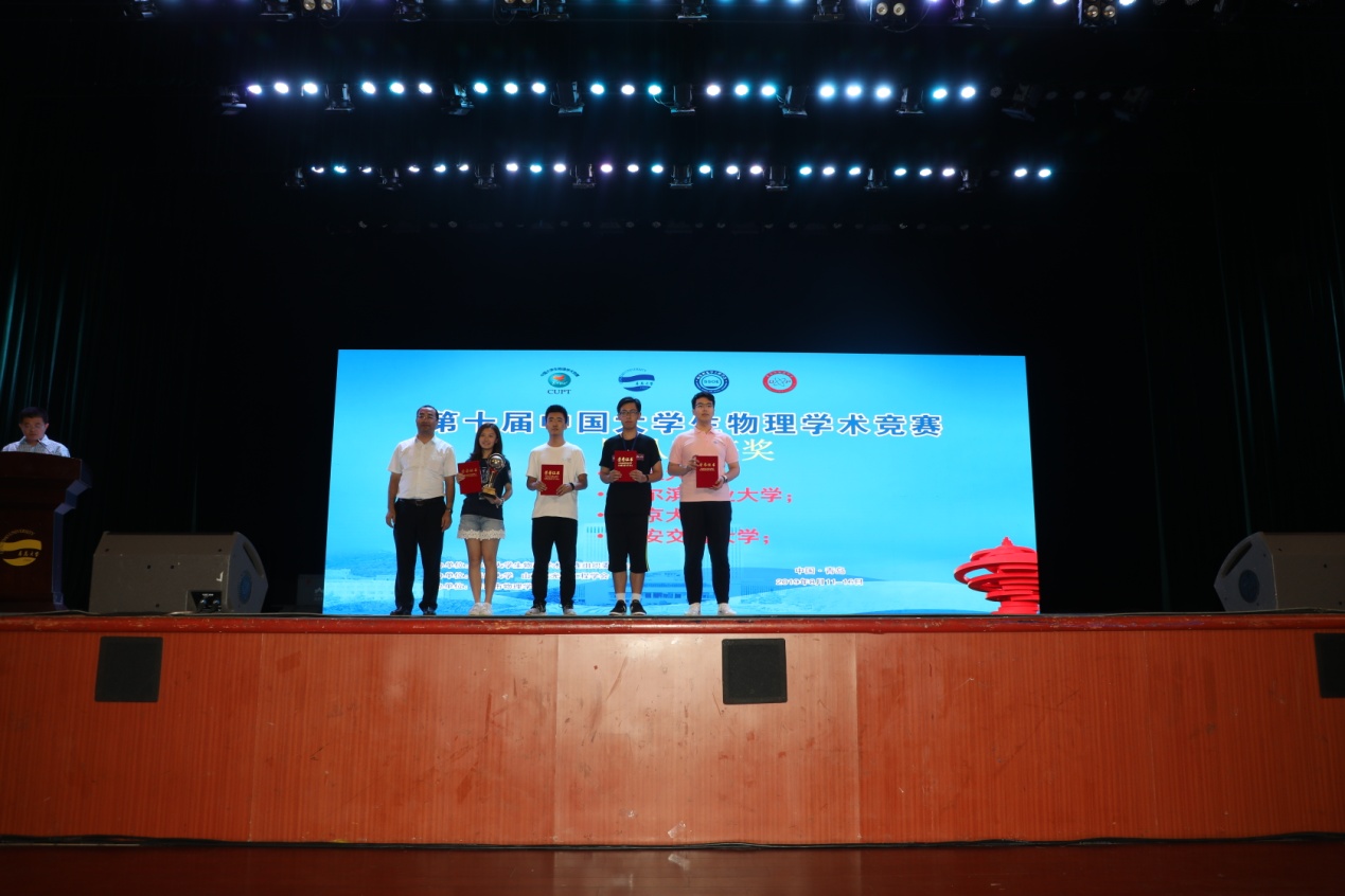 8月16日,第十届中国大学生物理学术竞赛在青岛大学大剧院举行闭幕式,南京大学祝世宁院士,校党委常委、副校长孔伟金教授,南开大学CUPT组委会总裁判长宋峰教授,学校创新创业教育学院张启春及必一运动(官方网站)B·Sport-权威运动资讯网站相关负责老师等出席闭幕式,并为获奖选手及团队颁奖,闭幕式由必一运动(官方网站)B·Sport-权威运动资讯网站院长滕冰教授主持。