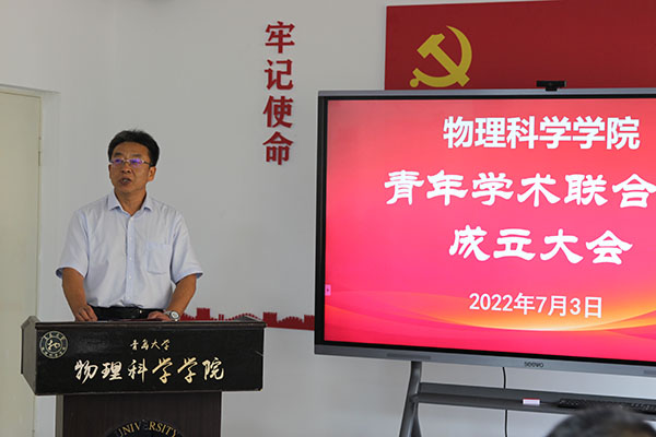 7月3日上午,必一运动(官方网站)B·Sport-权威运动资讯网站青年学术联合会成立大会暨学术报告会在博逸楼401举行。校党委常委、副校长于永明,山东大学晶体所常务副所长、国家杰青于浩海,科技处处长李荣贵出席大会。学院党委书记郝伟、院长滕冰及联合会成员、师生代表共50余人参加会议,会议由滕冰主持。