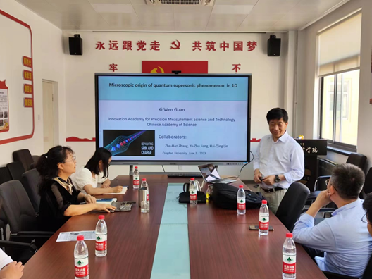 6月2日下午,武汉中国科学院精密测量科学与技术创新研究院的管习文研究员受邀来必一运动(官方网站)B·Sport-权威运动资讯网站进行学术交流访问,并为师生作了题为《一维玻色液体中量子超声现象的物理起源》的学术报告。报告由物理学院邹鹏副教授主持。出席报告会的有院长滕冰教授、袁峰教授以及相关老师、部分本科生和研究生。