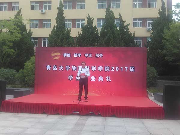 2013级应用物理专业鲜怡同学代表毕业生发言,表示一定不辜负老师的期望,尽最大努力创造精彩人生。