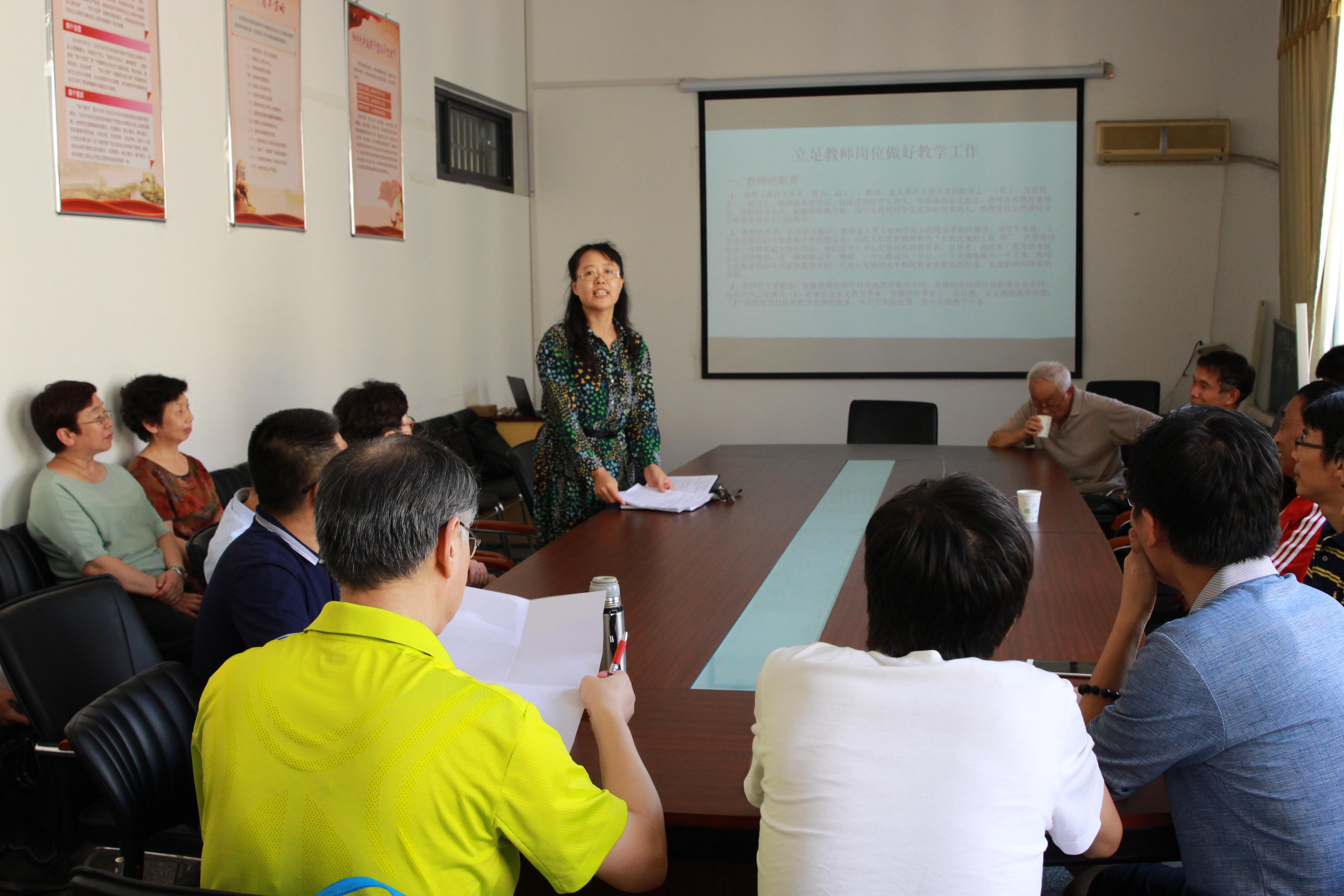 会上,原师范物理系主任曲世鸣作了《立足教师岗位做好教学工作》的报告,报告从教师的作用和责任、如何做好教学工作两方面展开,强调教学工作是实现培养目标的核心手段。教学工作首先需要做好大备课、小备课、备学生的备课环节,然后做好课件,写好教案,通过多媒体与板书结合的教学方法和手段,以人格和学识感染学生,做好教书和育人工作。