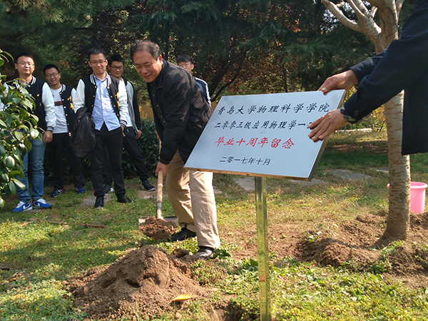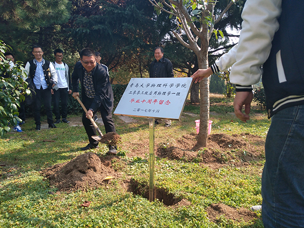 会上校友们依次进行了自我介绍,并回忆起当年充实的校园生活,校友们脸上洋溢着幸福的笑容。座谈会后,全体校友在博逸楼前合影留念,并在楼前松软的土地上种下了象征着毕业十周年的纪念树,把“兰桂飘香,桃李满天下”的美好祝愿送给了母校。