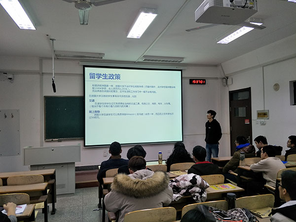 滕冰院长主持报告会时强调,学院深入贯彻校第三次党代会提出的“一三五五十”发展战略,将在切实提升学院国际化办学水平方面采取一系列举措,鼓励同学们开阔眼界、树立国际化视野,积极争取各种出国留学的机会,学院将为大家出国留学提供支持和帮助。