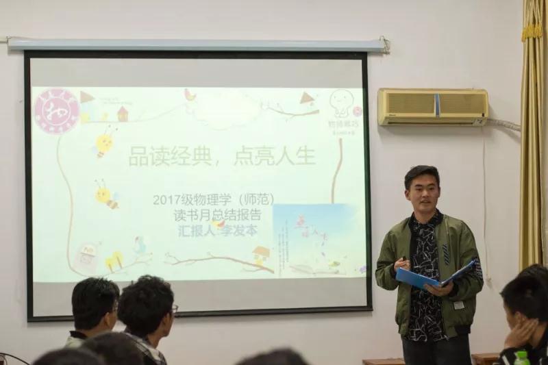 物理师范班的“品读经典,点亮人生’’,作为读书月的良好开端,传递了同学们的情谊,经典让我们用有限的生命去获取尽可能多的知识来了解这个世界。