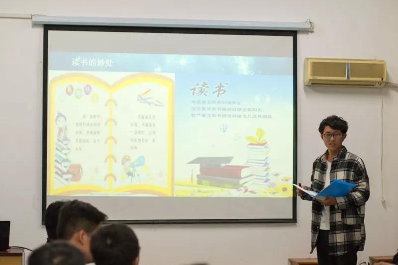 四班桑鸿运同学的报告“畅游书海,塑完美人生”,以朱熹的《观书有感》开始,报告内容以诗句贯穿始终,透露出诗词画意,表明了必一运动(官方网站)B·Sport-权威运动资讯网站不输文学院的豪气。